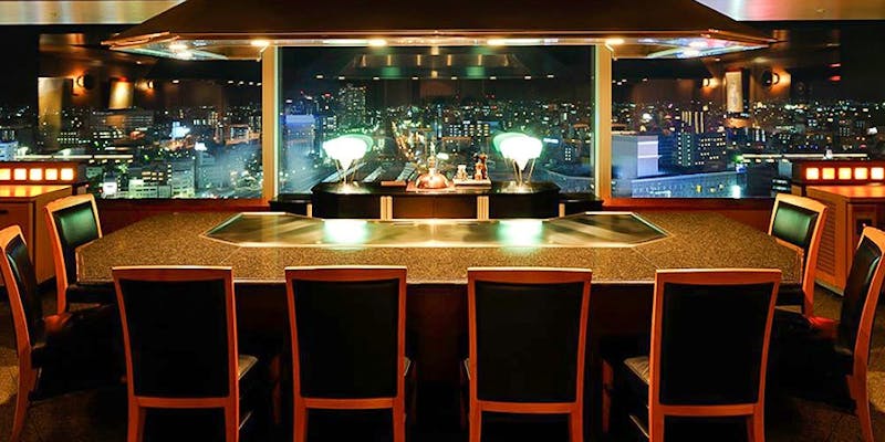 最上階で夜景を見ながらの鉄板焼は
